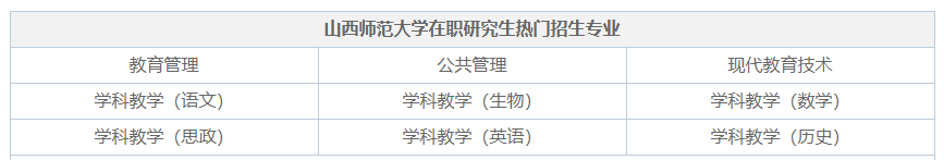 以上内容即山西师范大学在职研究生热门招生专业的介绍,希望能为大家提供所需资讯。有进修意向的人员,可经慎重考虑后选择适合自己的课程学习,这样对日后发展也有帮助。