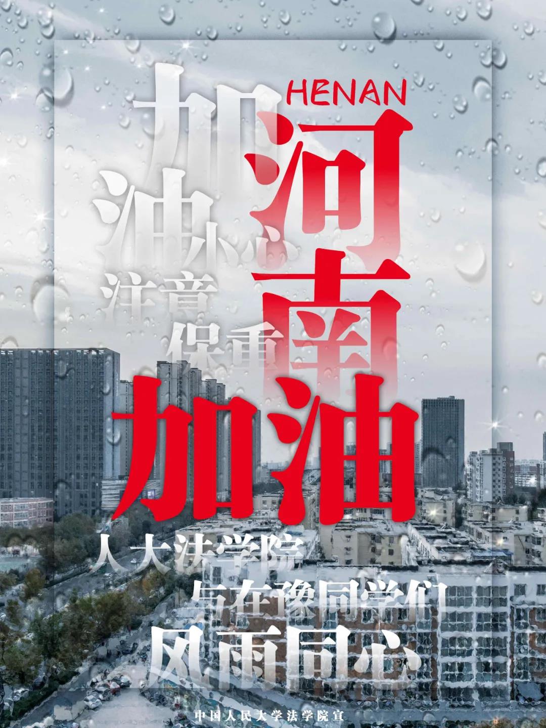 近日我国部分省市进入汛期,河南等地遭遇极端强降雨天气,法学院提醒各位同学务必及时关注天气变化,注意防汛防灾,注意个人安全。